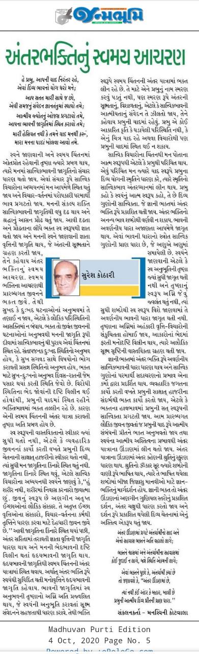 એવાં ભક્તને પૂછો કે, અંતર્યામી ક્યાં છે તો જણાવશે કે, "અંતર ઊંડાણમાં છે,