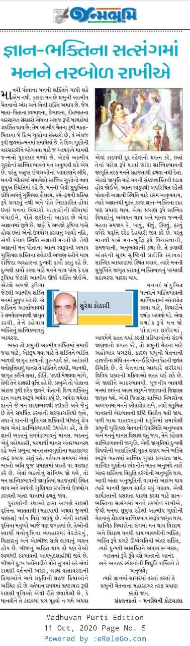 જ્ઞાન-ભક્તિના સત્સંગમાં મનને તરબોળ રાખીએ