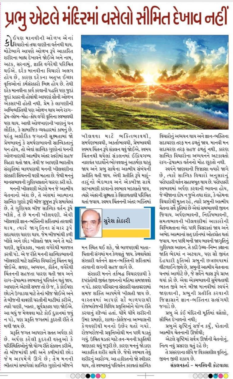 પ્રભુ એટલે મંદિરમાં વસેલો સીમિત દેખાવ નહીં