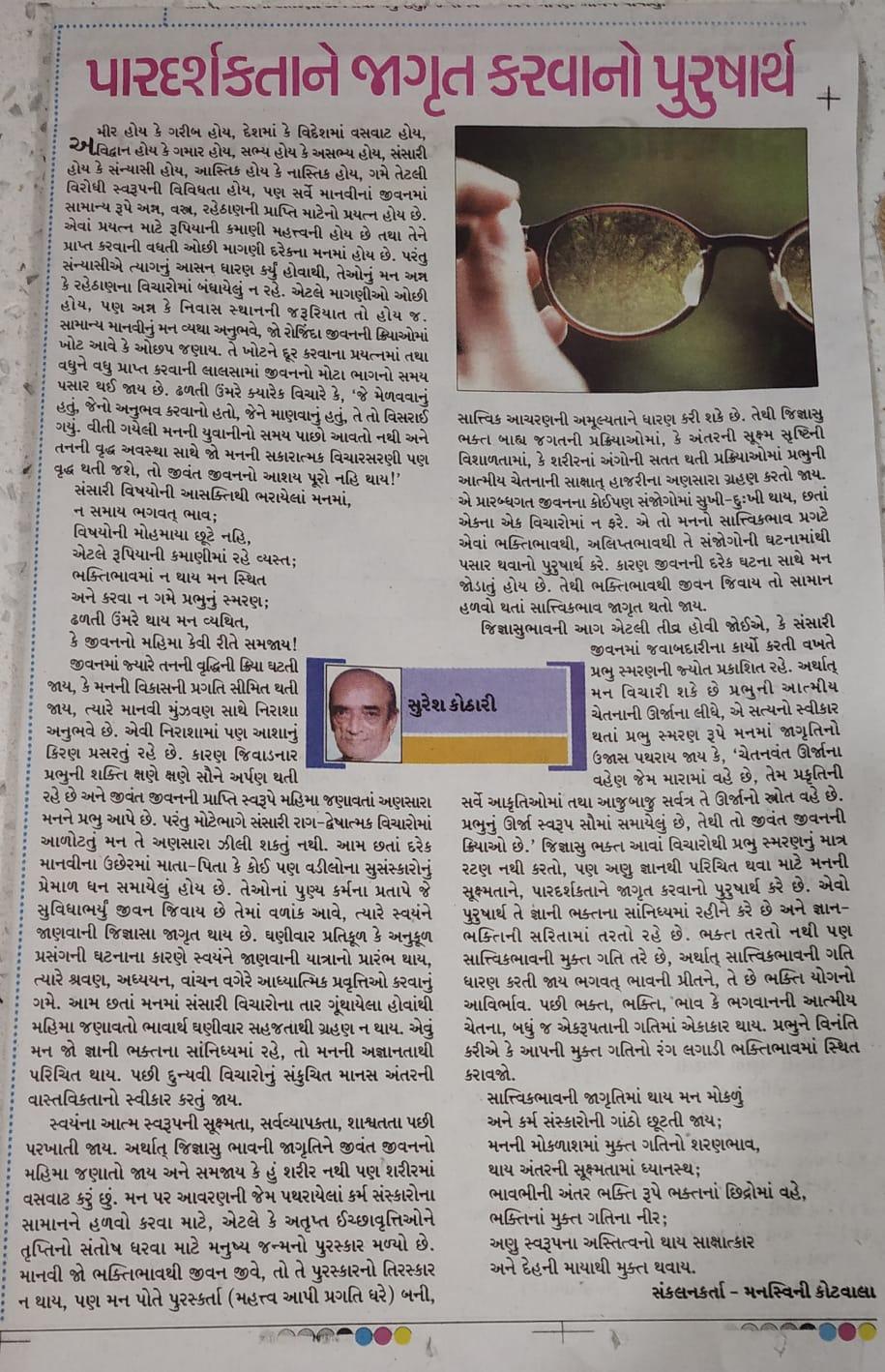 પારદર્શકતાને જાગૃત કરવાનો પુરુષાર્થ