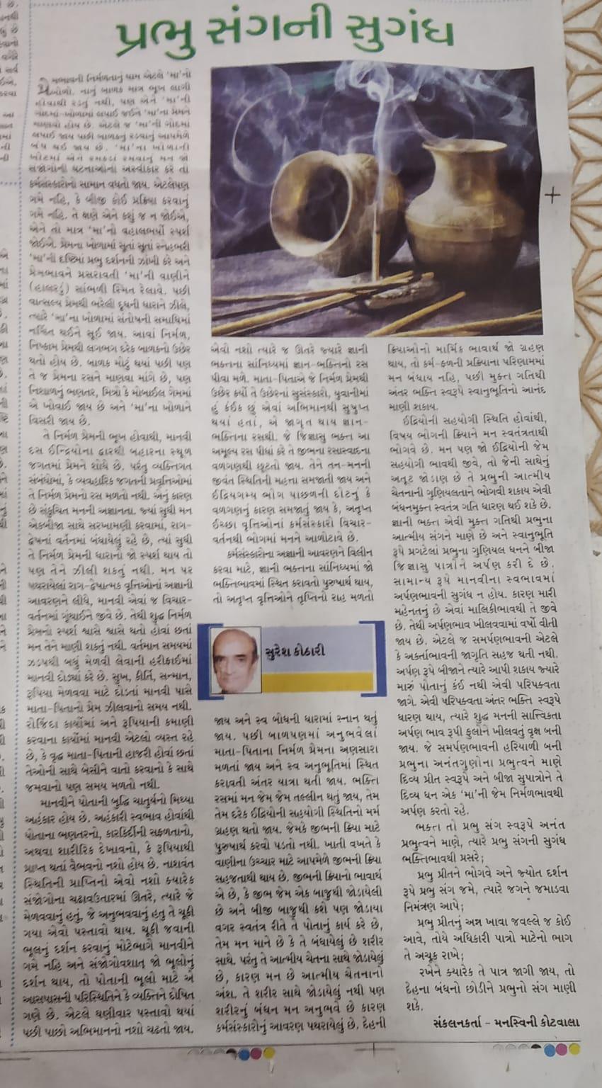ભક્ત તો પ્રભુ સંગ સ્વરૂપે અનંત પ્રભુત્વને માળે, ત્યારે પ્રભુ સંગની સુગંધ ભક્તિભાવથી પ્રસરે;