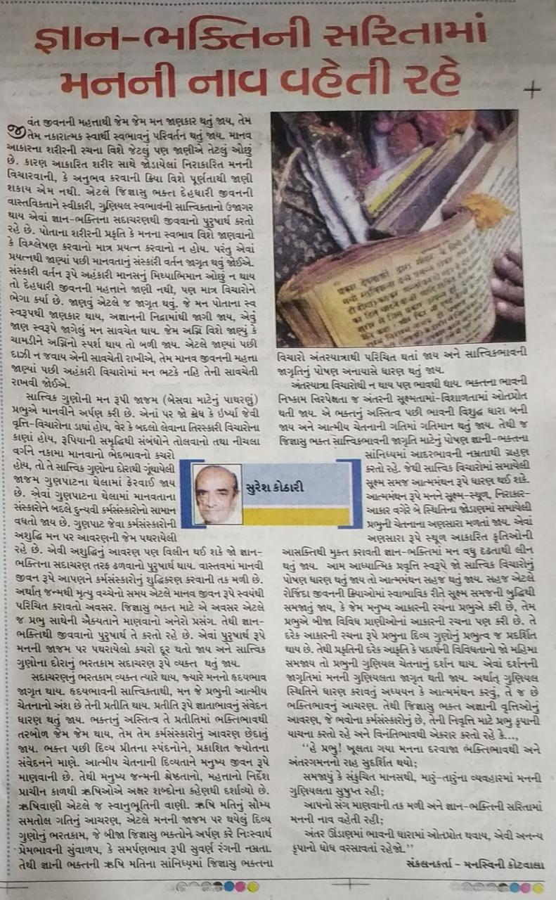 આપનો સંગ માણવાની તક મળી અને જ્ઞાન ભક્તિની સરિતામાં મનની નાવ વહેતી રહી;