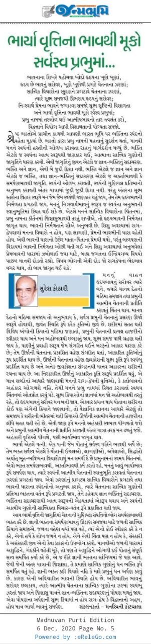ભાર્યા વૃત્તિના ભાવથી મૂકો સર્વસ્વ પ્રભુમાં