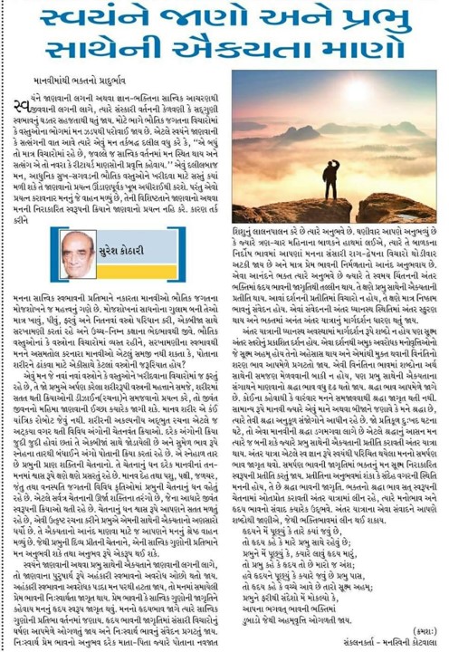 સ્વયંને જાણો અને પ્રભુ સાથેની ઐક્યતાને માણો