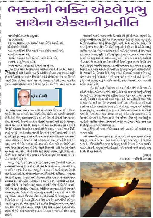 ભક્તની ભક્તિ એટલે પ્રભુ સાથેના ઐક્યની પ્રતીતિ