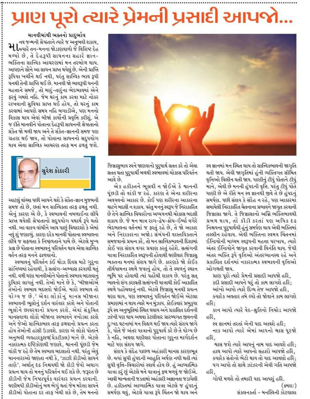 પ્રાણ પૂરો ત્યારે પ્રેમની પ્રસાદી આપજો હરિ, કદી પ્રસાદી આપને ધરું તો કામ લાગશે હરિ;