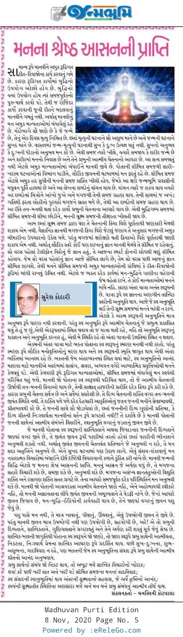 સ્વયંની સૂક્ષ્માતીત સ્થિતિના અણસારા મળે અને મન બને પ્રભુ સંબંધનું આત્મીય તીર્થ ધામ.